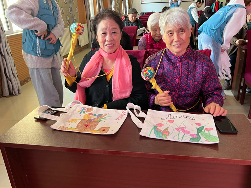 本次活動(dòng)由青年志愿者團(tuán)隊(duì)發(fā)起,旨在緩解老年人孤獨(dú)感、增進(jìn)代際理解。活動(dòng)以“情感連接+能力共創(chuàng)”為核心,設(shè)置了簽到破冰、手工教學(xué)、作品分享等環(huán)節(jié):青年志愿者一對(duì)一指導(dǎo)老年人制作艾草錘,既傳遞了艾草養(yǎng)生的傳統(tǒng)知識(shí),也鼓勵(lì)老人發(fā)揮創(chuàng)意裝飾手作;破冰游戲與作品分享環(huán)節(jié)中,老人們分享生活故事,志愿者們傾聽歲月感悟,現(xiàn)場(chǎng)更送出“雙重驚喜”——志愿者親手繪制的帆布包逐一遞到老人手中,精心剪裁的精美窗花也預(yù)留兩副贈(zèng)予養(yǎng)老院展示,讓溫暖創(chuàng)意常駐這個(gè)溫馨“家”中,F(xiàn)場(chǎng)笑聲與交流聲交織,代際隔閡在陪伴中悄然消融。