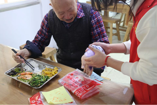 手工活動結(jié)束后,志愿者們十分默契地開始整理現(xiàn)場。他們將場地收拾得干凈整潔,讓這份整潔也延續(xù)著愛心的溫度。之后,在王教授的帶領(lǐng)下,志愿者們走進(jìn)了社區(qū)食堂,實地了解老人們的日常飲食環(huán)境。大家仔細(xì)觀察著餐食的搭配是否營養(yǎng)均衡,用餐設(shè)施是否方便實用,為后續(xù)更好地開展服務(wù)積累經(jīng)驗。王教授表示:“這種社校聯(lián)動方式非常好,后續(xù)我們會輸送更多的大學(xué)生志愿者進(jìn)社區(qū)。”