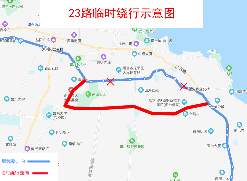 取消:南山公園、芝罘區(qū)稅務(wù)局、芝罘區(qū)婦幼保健院、煙臺市奇山醫(yī)院、源空間書城、煙臺藝術(shù)學(xué)校(正大光明眼科醫(yī)院)、煙臺公交集團(tuán)、金溝寨立交橋、海濱小區(qū)(路東)等9處站點。