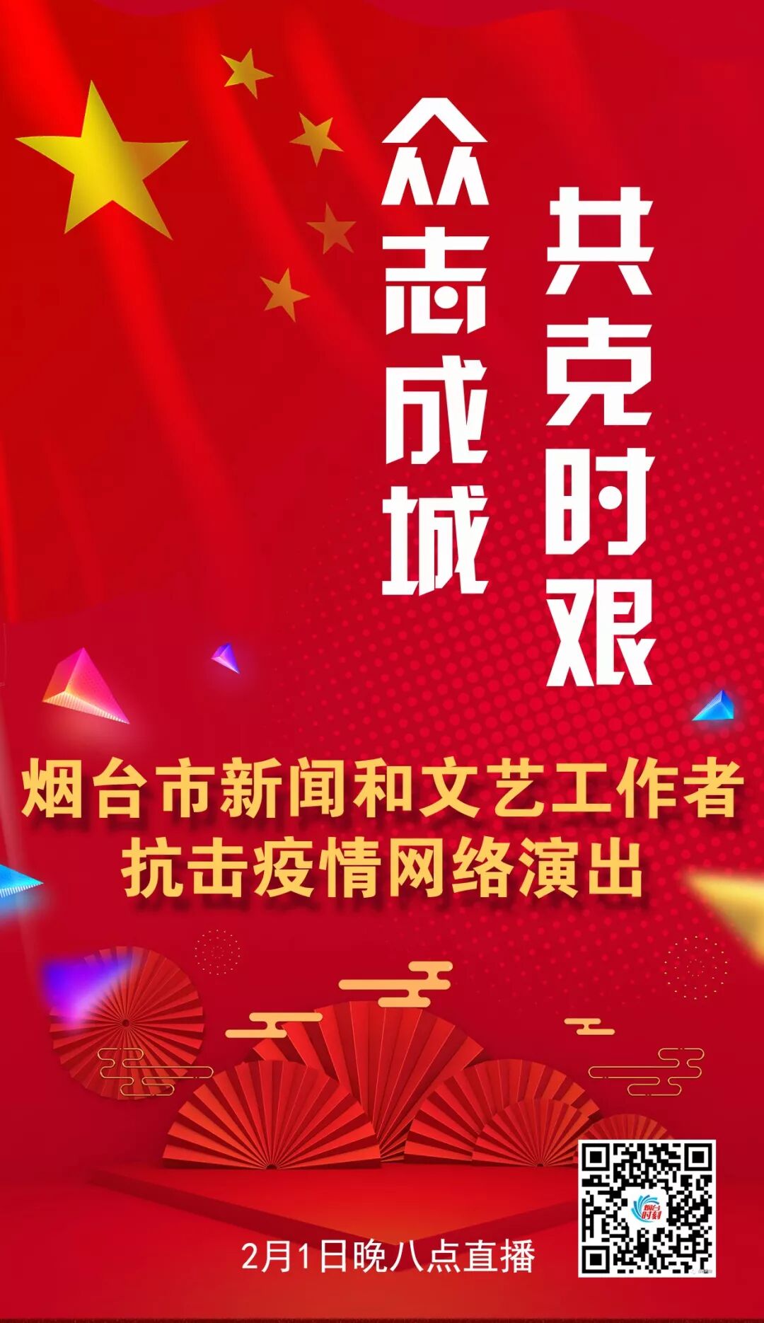 疫情就是命令,防控就是責(zé)任!在全國上下共同抗擊病毒的特殊時(shí)刻,由中共煙臺(tái)市委宣傳部、煙臺(tái)市文化和旅游局、煙臺(tái)廣播電視臺(tái)聯(lián)合主辦的 “眾志成城 共克時(shí)艱——煙臺(tái)市新聞和文藝工作者抗擊疫情網(wǎng)絡(luò)演出”將于今晚八點(diǎn)直播。
