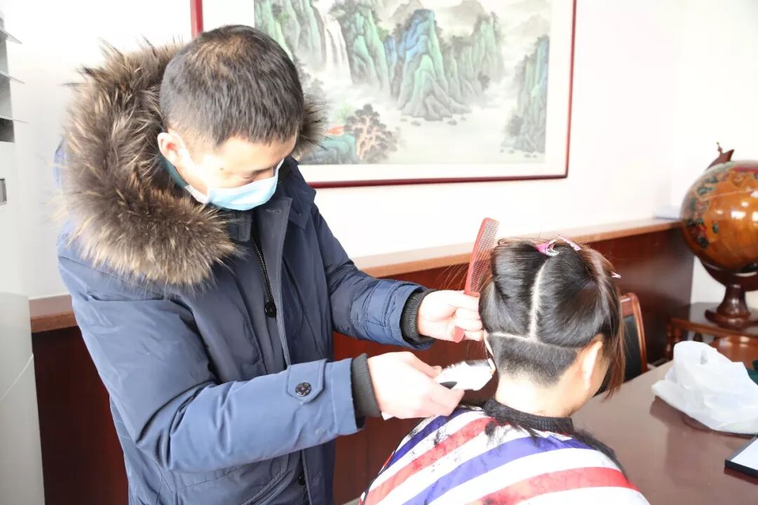 在同事為其整理行囊的同時(shí),理發(fā)師已在為孫園園剪起了頭發(fā),為了方便醫(yī)療工作,孫園園選擇將一頭長發(fā)剪成了齊肩短發(fā),她已放下愛美之心,要以矯健的姿態(tài)抗擊疫情。