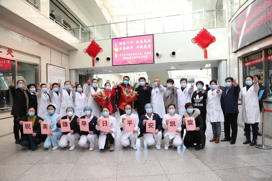 送別儀式簡單而溫馨,醫(yī)院黨委書記張慶偉,黨委副書記、院長李學(xué)成向他們送上了鮮花和院方的囑托,希望她們在疫情一線發(fā)揚(yáng)救死扶傷、吃苦耐勞、無私奉獻(xiàn)的醫(yī)者精神,為更多患者帶去希望,同時(shí)也要做好自我保護(hù),期盼早日平安歸來。十余名醫(yī)護(hù)人員舉起“祝英雄早日平安凱旋”的字樣向她們送別,兩人在醫(yī)護(hù)和患者的祝福聲中揮手上車。