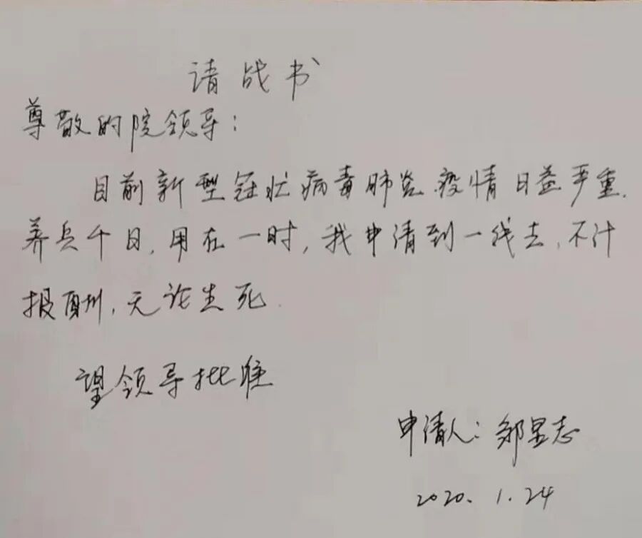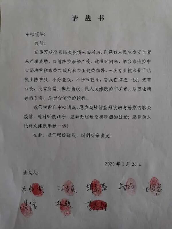 ▲李春輝等疾控中心技術骨干的請戰(zhàn)書