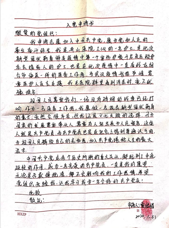 ▲火線入黨申請書