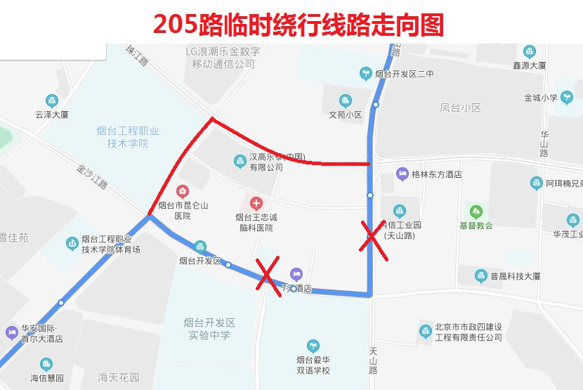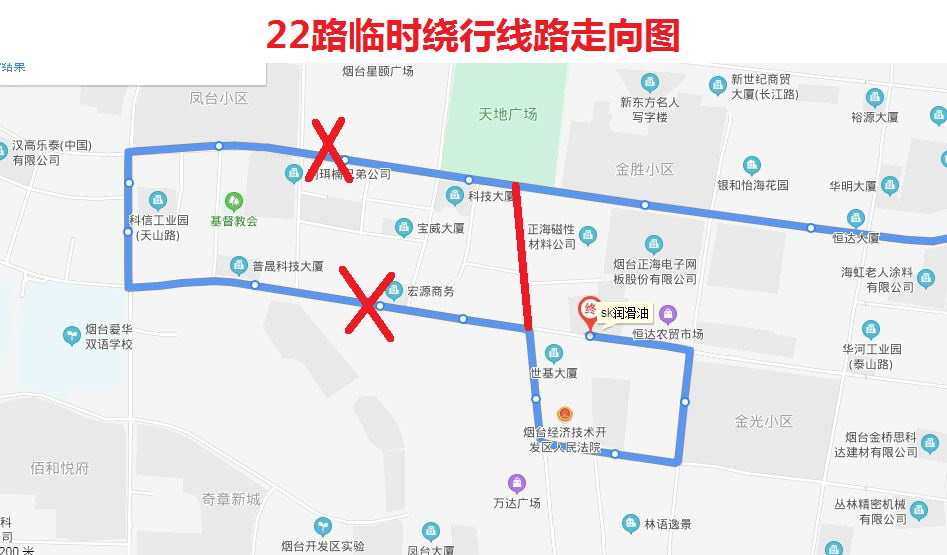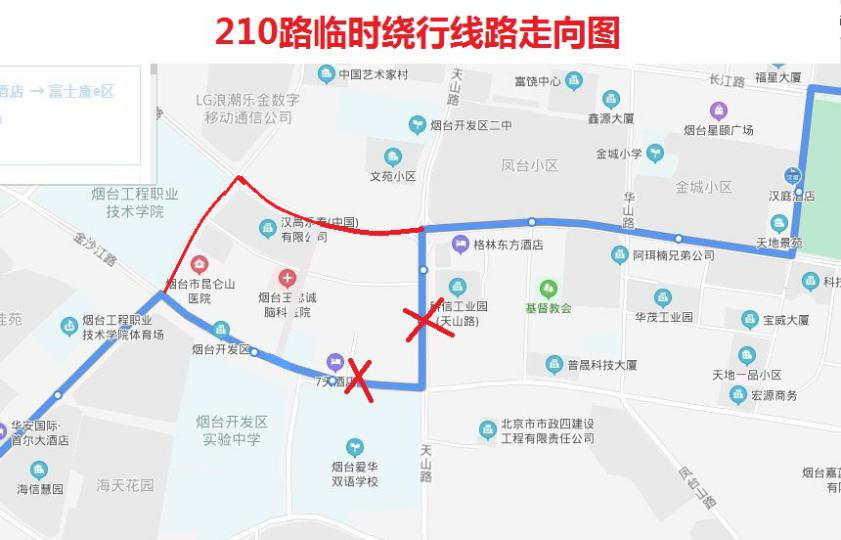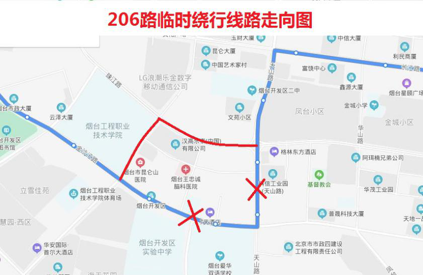取消:煙臺昆侖山醫(yī)院、開發(fā)區(qū)高級職業(yè)學(xué)校、開發(fā)區(qū)高級中學(xué)、業(yè)達(dá)工業(yè)園、泰盛公司等5處站點。