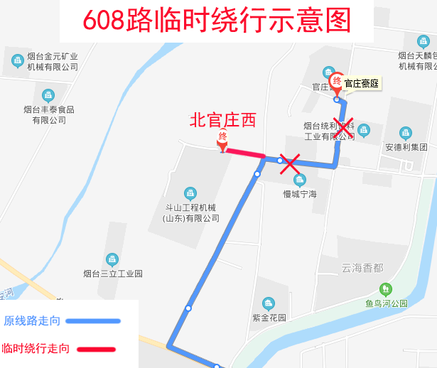 6由蛤堆后發(fā)車,沿原線路行至垛山路與新城大街交叉口左轉(zhuǎn),沿新城大街運(yùn)行至北官莊西(臨時(shí)站點(diǎn))。