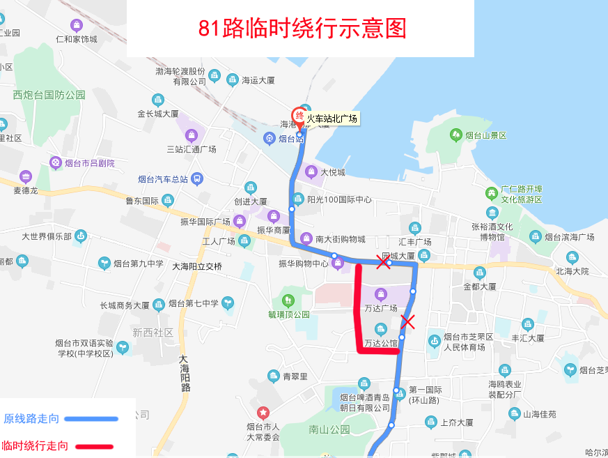 取消:煙臺(tái)毓璜頂醫(yī)院、建昌南街、煙臺(tái)五中、所城里等4處站點(diǎn)。