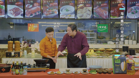 下一站,飯小二又坐了公交,到了煙臺日報社站,這里不僅有承載煙臺悠久歷史的老建筑,美食也特別多。這道菜是煙臺人的心頭好,怎么吃都好吃!原來這就是萬能美食——海鮮醬,從廚47年的飯店大廚程偉華,帶來一道海鮮醬炒白菜。