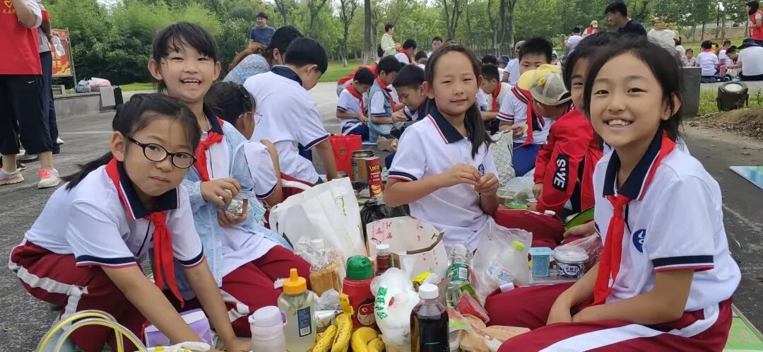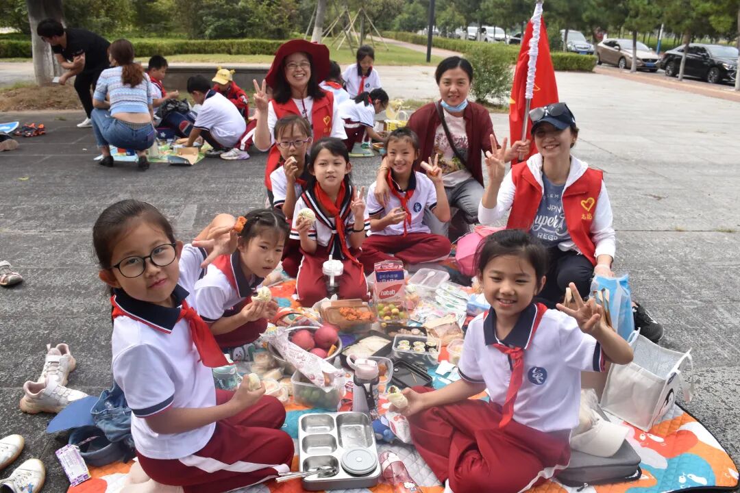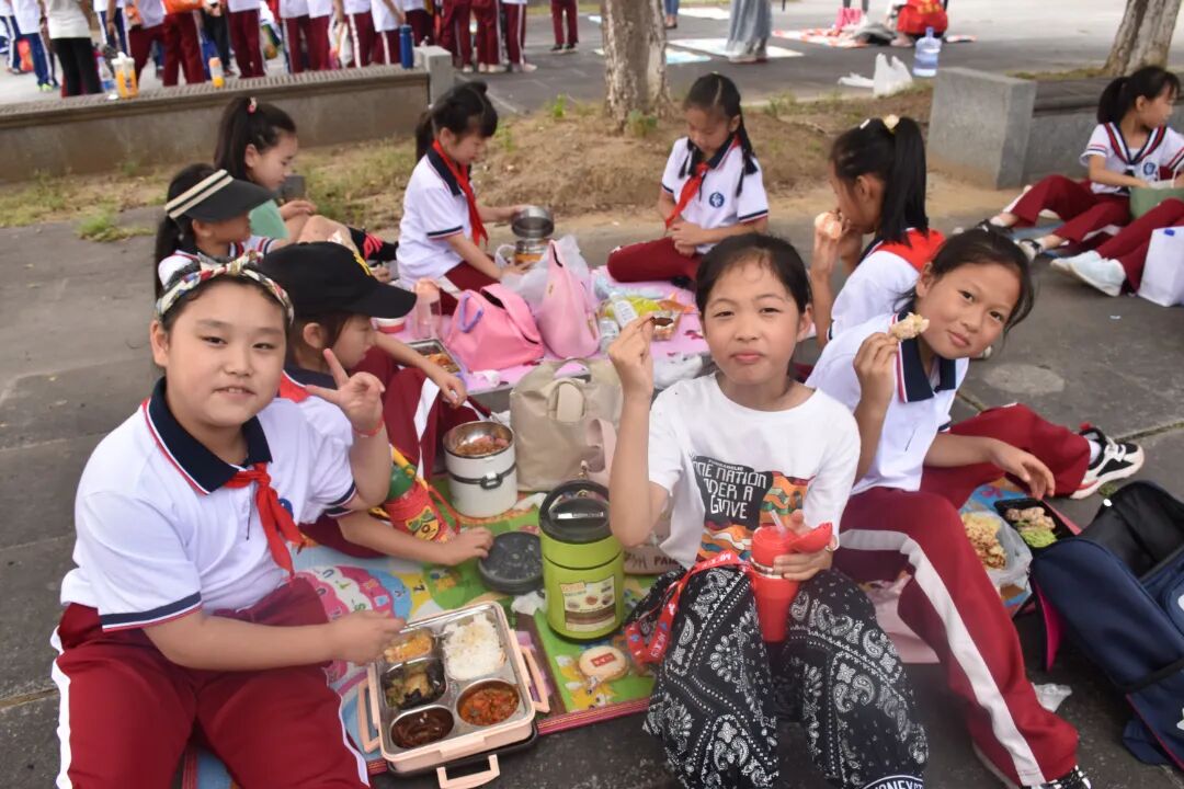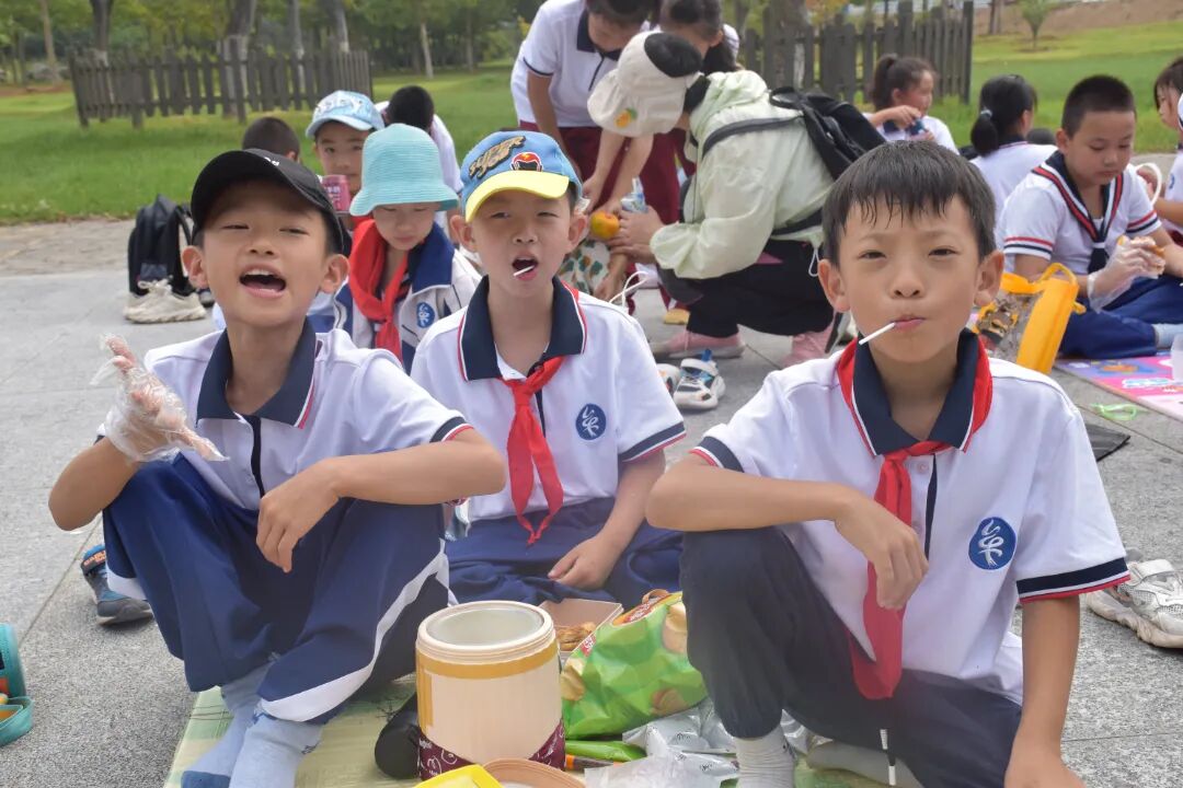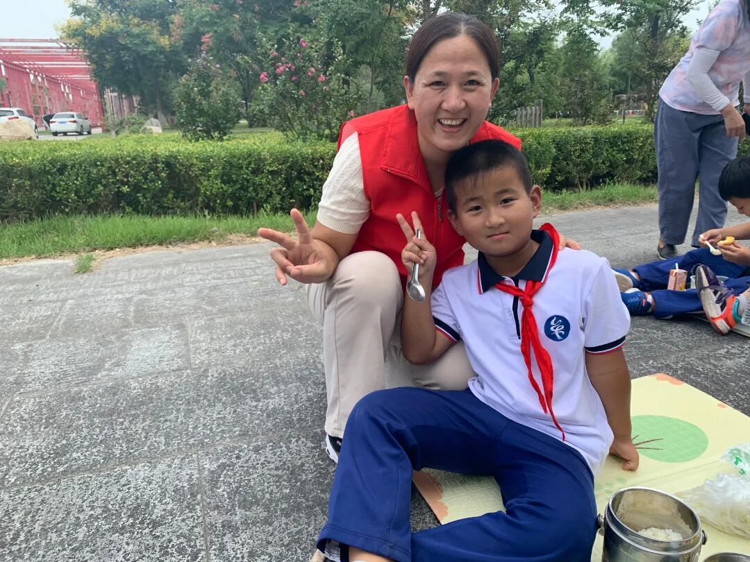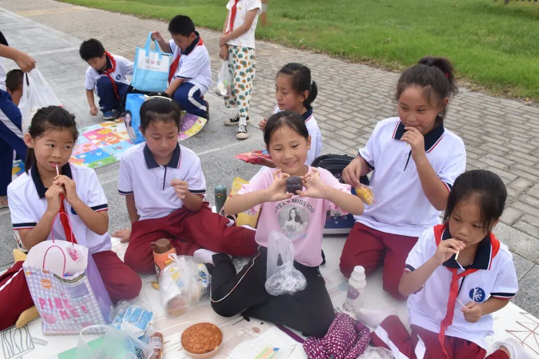 合影留念以后,小肚子也開始咕咕叫喚,小龍人們一同來到了沁水河主題公園,伴著愜意的陣陣秋風(fēng)開始野餐!罢l知盤中餐,粒粒皆辛苦。”勞動過后的午餐格外美味,小龍人們也格外珍惜,沒有浪費(fèi)一粒糧食,樂在分享,愛意融融。