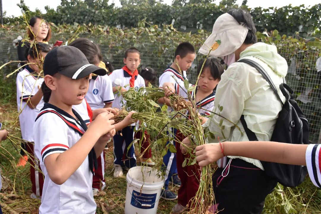 簡單休整以后,小龍人們便迫不及待地把花生從土里刨出來,老師也借此機(jī)會給小龍人們上了一堂關(guān)于花生的科學(xué)課,引導(dǎo)學(xué)生觀察花生、認(rèn)識花生、了解花生的各種食用方法和加工技藝,當(dāng)然還有收獲花生的流程,除草、拔花生、清理泥土、摘花生……
