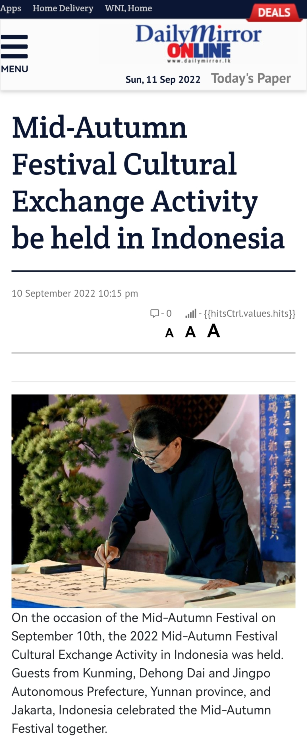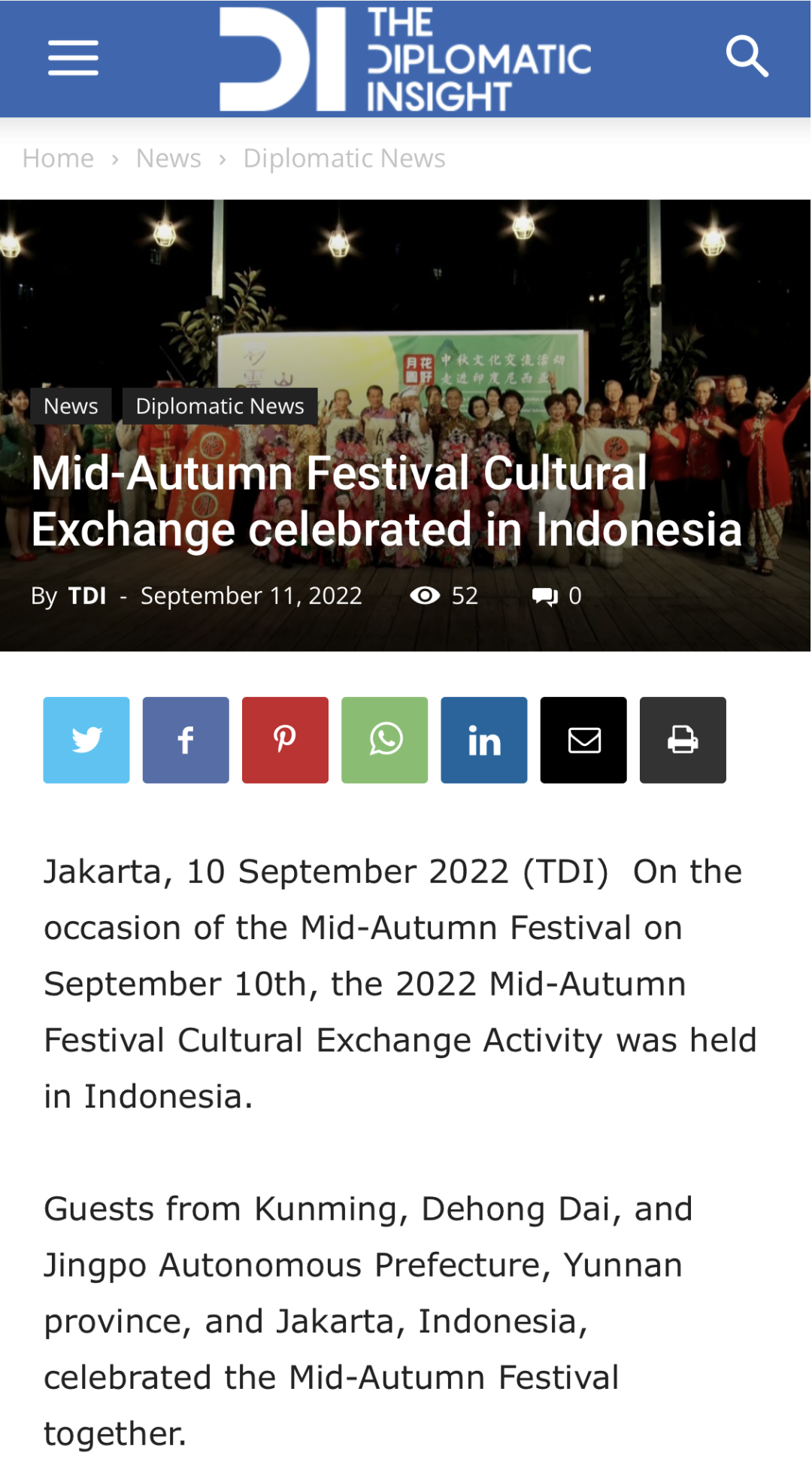 馬來西亞三語媒體《馬中透視》發(fā)布2022年“花好月圓”中秋文化交流活動走進印度尼西亞報道,并在首頁推薦。