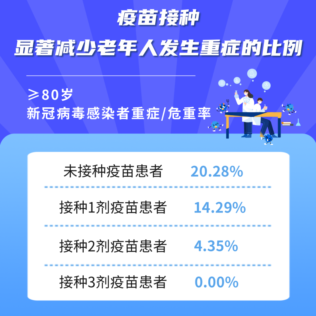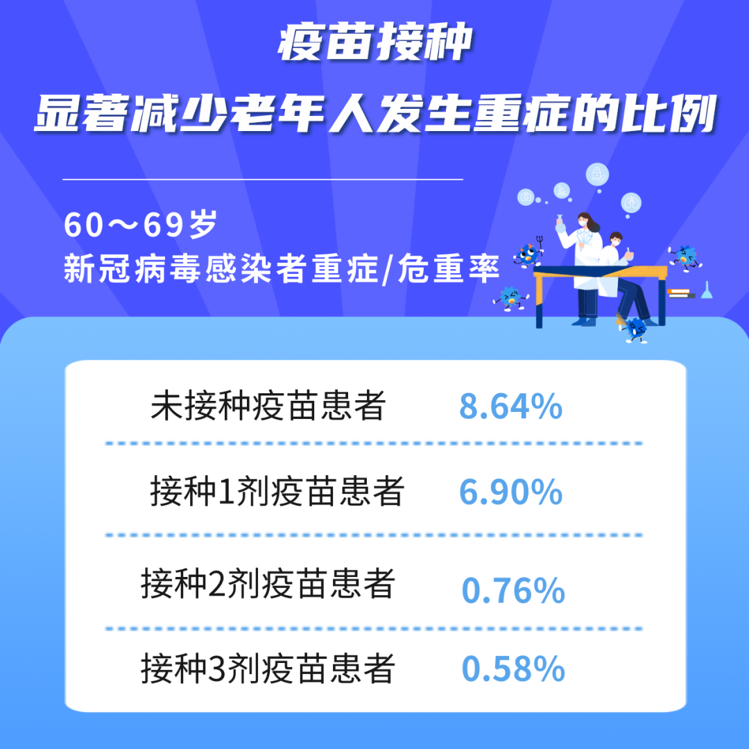 以上數(shù)據(jù)表明,接種新冠疫苗,對(duì)降低60歲以上老年人群的重癥率有顯著效果。