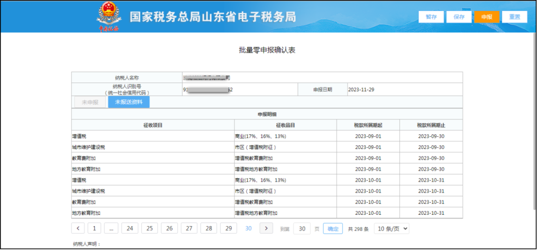 一是調(diào)整批量零申報(bào)功能,系統(tǒng)校驗(yàn)批量零申報(bào)屬期內(nèi)是否存在應(yīng)轉(zhuǎn)出的異常憑證數(shù)據(jù),若存在則阻斷存在應(yīng)轉(zhuǎn)出異常憑證數(shù)據(jù)的屬期之后的申報(bào),僅完成之前屬期申報(bào),并彈出提示信息。