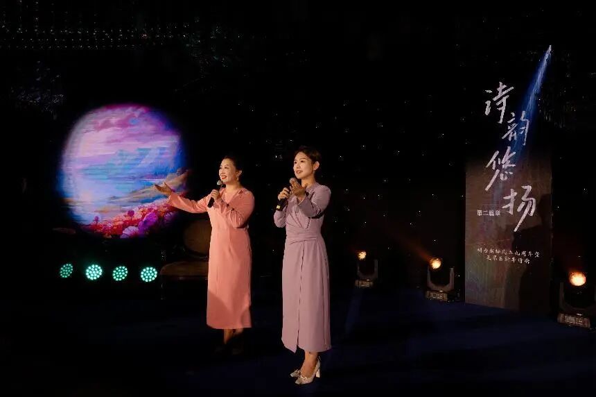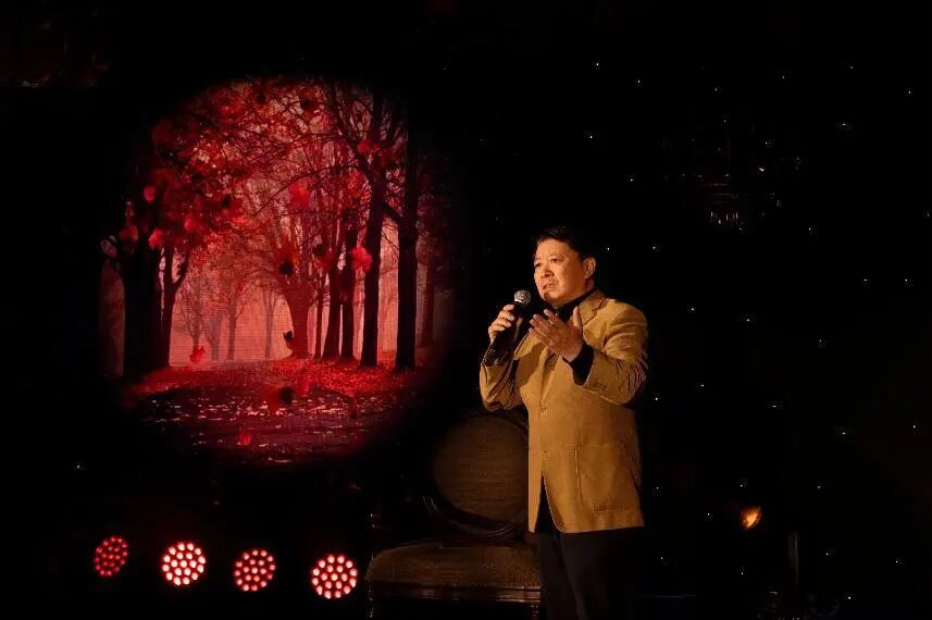詩會分為“歲月如歌”“詩韻悠揚(yáng)”“情滿人間”“致敬那一束光”四個篇章,通過朗誦經(jīng)典詩歌和原創(chuàng)作品,展現(xiàn)了朗誦藝術(shù)的獨(dú)特魅力和深厚底蘊(yùn),F(xiàn)場氣氛熱烈,掌聲不斷,觀眾們被朗誦者深情的演繹所打動,在著名表演藝術(shù)家張秋歌老師的帶領(lǐng)下全場誦響《朗誦者之歌》,將詩會推向了高潮,讓大家感受到朗誦的魅力與力量。