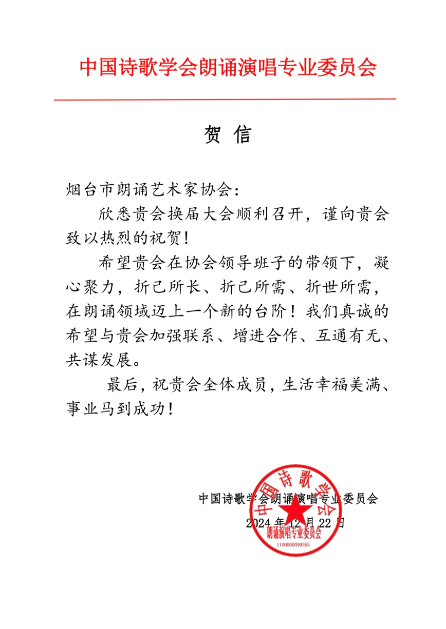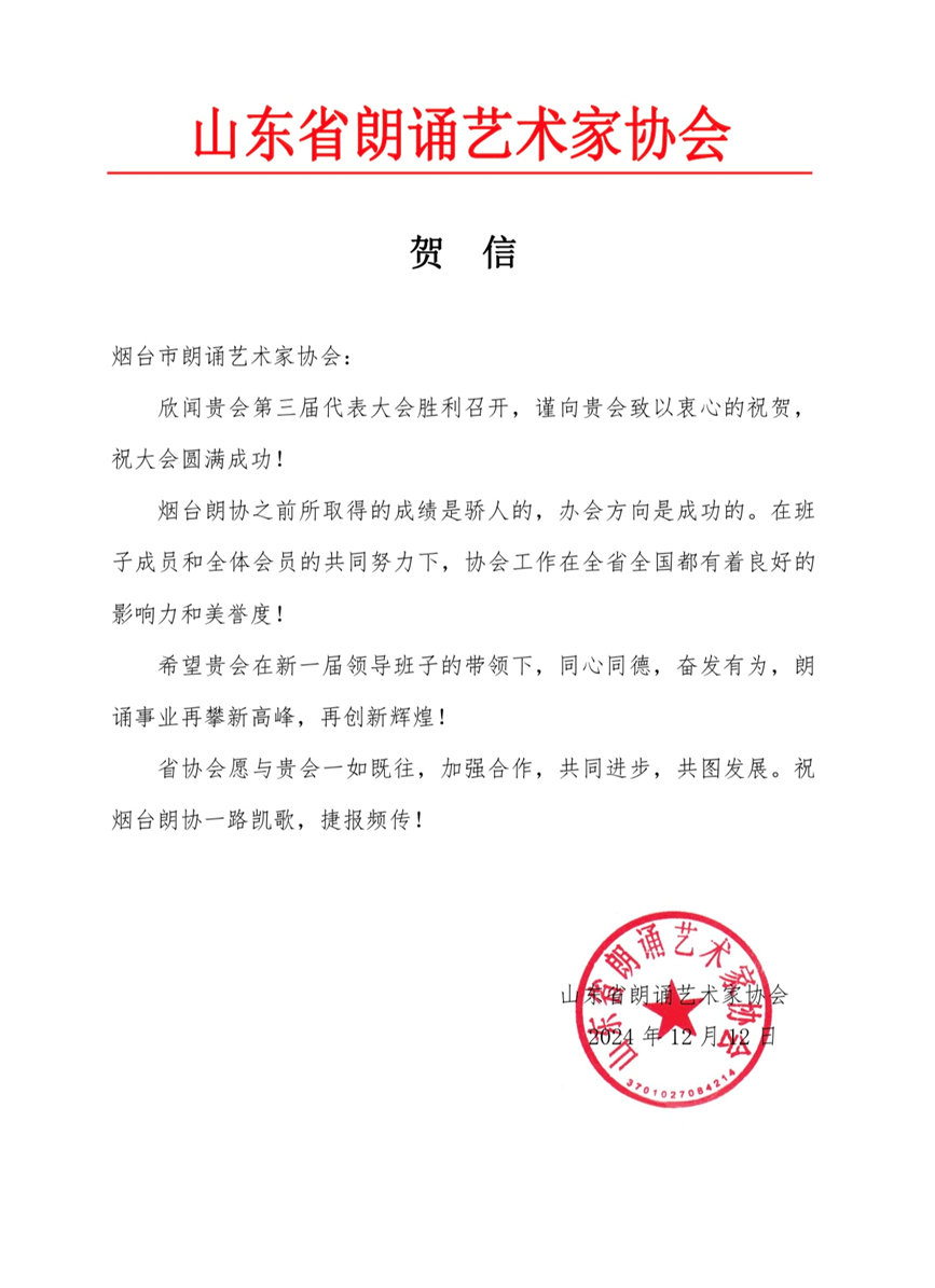 2024年12月22日,煙臺市朗誦藝術(shù)家協(xié)會第三次會員代表大會勝利召開。