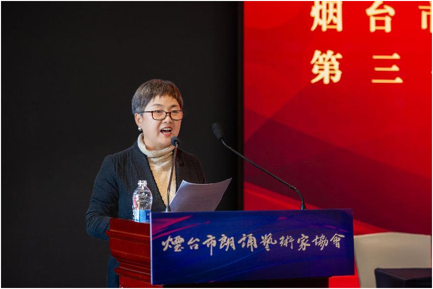 新當(dāng)選第三屆煙臺朗協(xié)主席劉金玲在講話中表示,愿在老一輩藝術(shù)家的帶領(lǐng)下,同廣大會員攜手共進(jìn),與黨同心、與正道同向、與時代同行,用聲音傳誦經(jīng)典、謳歌時代,為傳遞中國聲音、為弘揚(yáng)傳統(tǒng)文化、為煙臺市朗誦藝術(shù)事業(yè)的繁榮發(fā)展而努力奮斗。