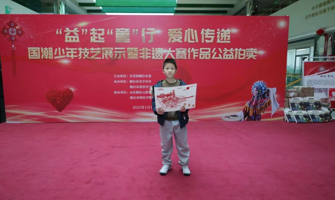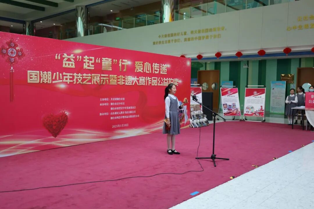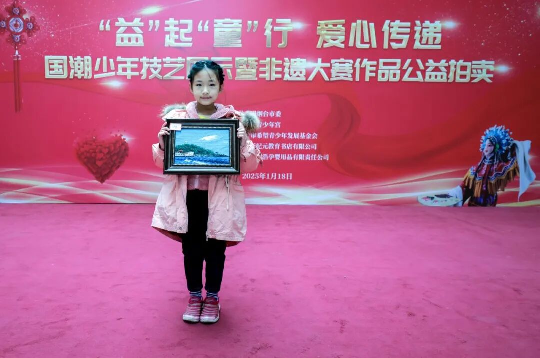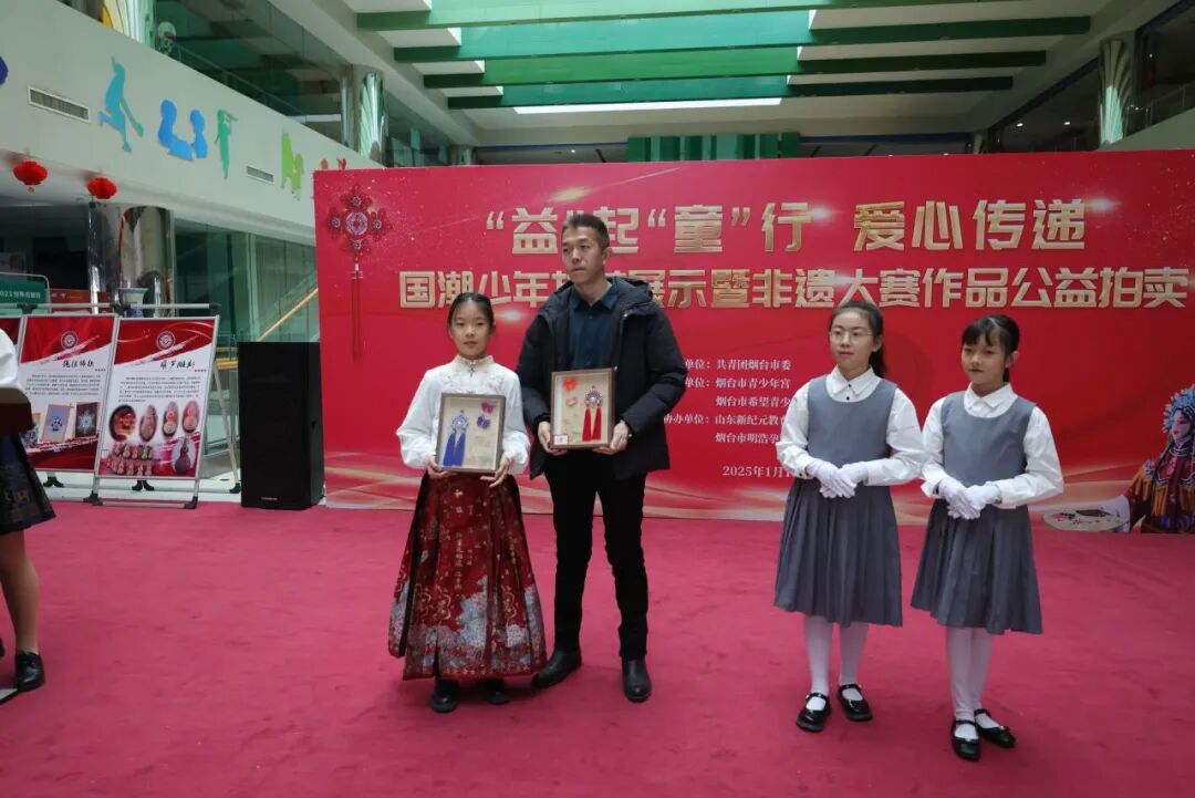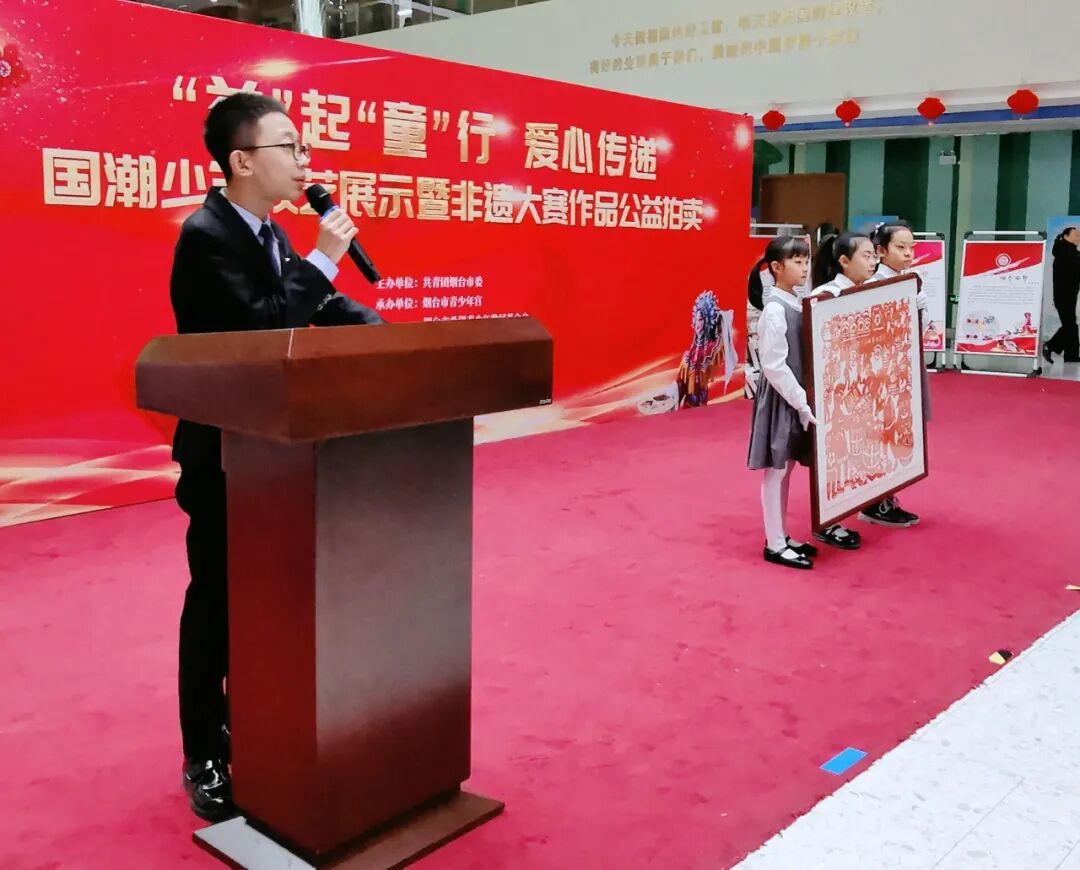 在拍賣現(xiàn)場(chǎng),小主持人對(duì)作品進(jìn)行了現(xiàn)場(chǎng)講解,這些作品是2024年“品重?zé)熍_(tái) 非遺相伴”煙臺(tái)市第三屆青少年非遺比賽的部分一等獎(jiǎng)作品。