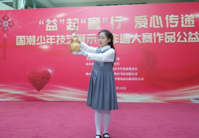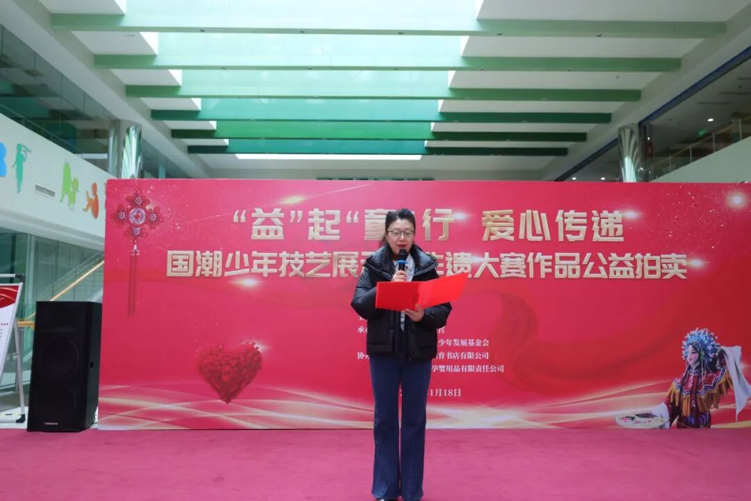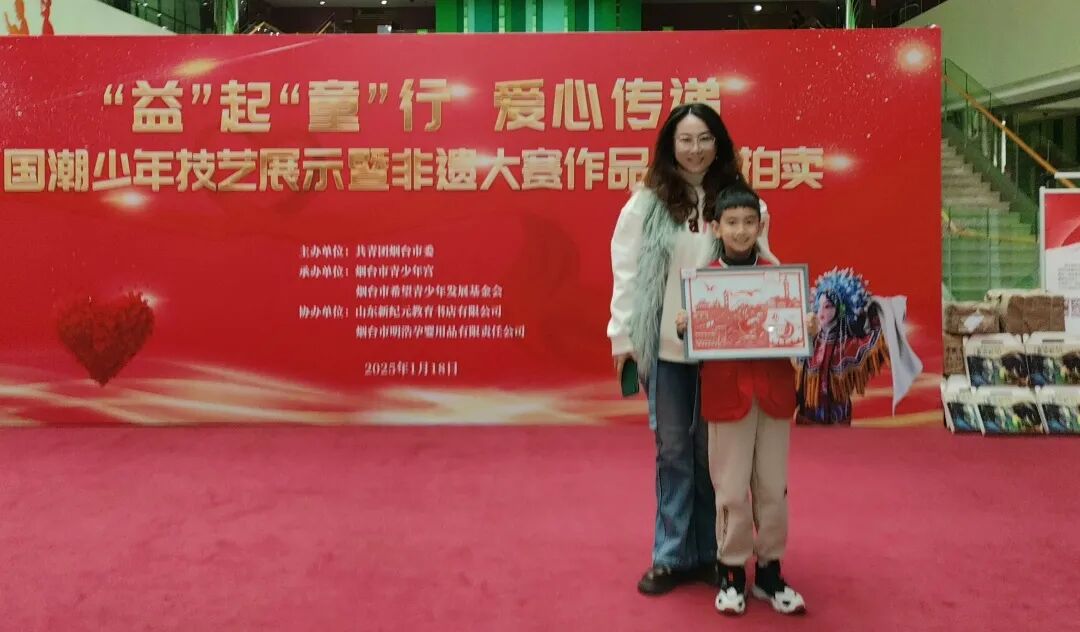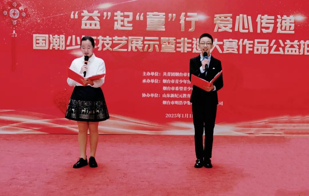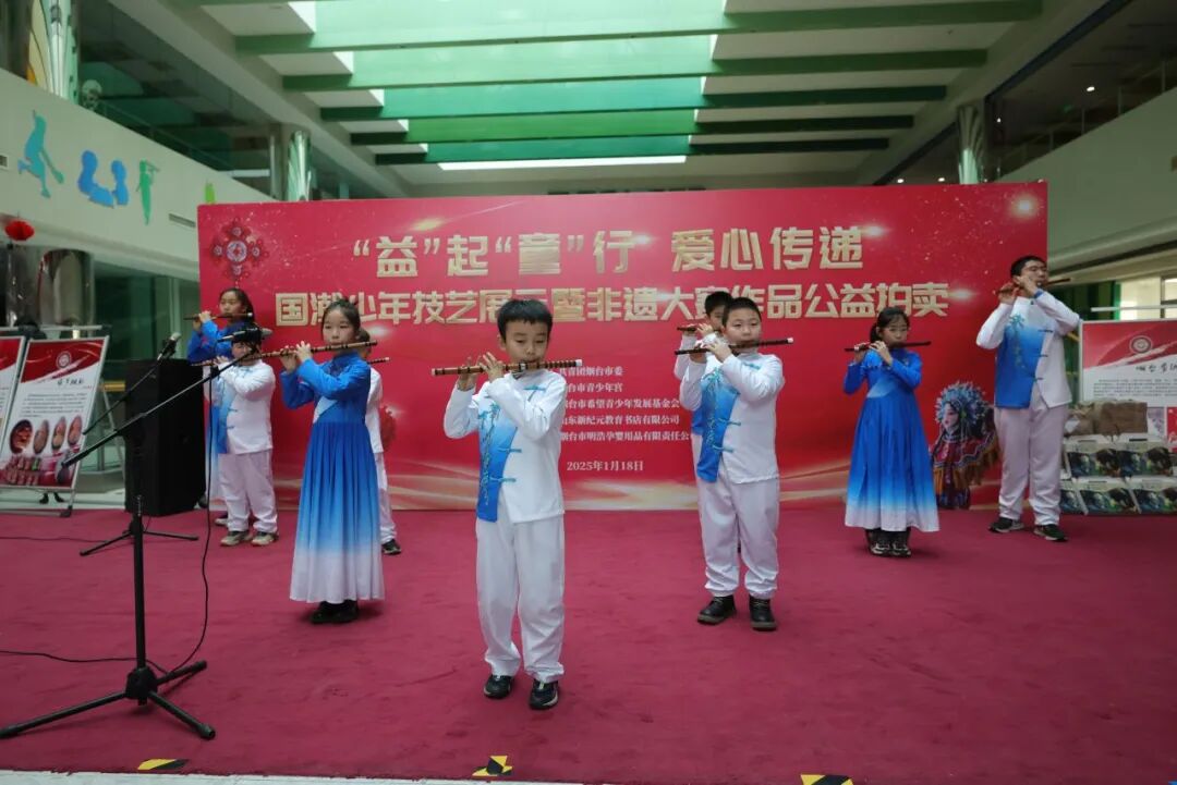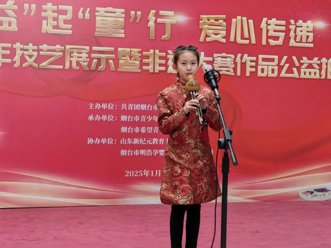 在拍賣現(xiàn)場(chǎng),小主持人對(duì)作品進(jìn)行了現(xiàn)場(chǎng)講解,這些作品是2024年“品重?zé)熍_(tái) 非遺相伴”煙臺(tái)市第三屆青少年非遺比賽的部分一等獎(jiǎng)作品。