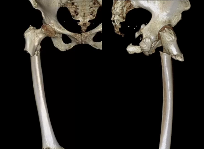 王阿姨(化姓),女,73歲。自述2個月前無明顯誘因出現(xiàn)右大腿疼痛,當時未予治療。就診前1小時,她在活動后出現(xiàn)右大腿疼痛加重,同時伴局部畸形、異;顒,隨即前往醫(yī)院就診。急診行X線檢查后,被診斷為右股骨近端骨折。