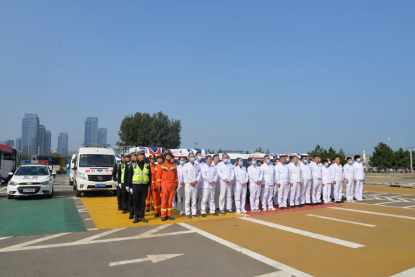 本次演練以重大交通事故導(dǎo)致多人受傷的突發(fā)事件為模擬場景,組織進行全真實戰(zhàn)演練,全面檢驗我市院前醫(yī)療急救體系建設(shè)成果,展現(xiàn)應(yīng)急救援工作新亮點。演練中,市120急救指揮中心迅速啟動應(yīng)急預(yù)案,組織各方力量救援,第一時間調(diào)派黃渤海新區(qū)、芝罘區(qū)、福山區(qū)、蓬萊區(qū)等四區(qū)11家急救網(wǎng)絡(luò)醫(yī)院12輛救護車趕赴現(xiàn)場,并同步聯(lián)動公安、消防等部門派出警車3輛、消防車1輛參與現(xiàn)場救援,共調(diào)用醫(yī)療、公安、消防等多支隊伍力量,參演人員近百人。救援人員嚴格按照應(yīng)急預(yù)案要求開展醫(yī)療應(yīng)急救援,全面展現(xiàn)了突發(fā)事件醫(yī)療救援應(yīng)急指揮、快速響應(yīng)、批量傷員檢傷分類、現(xiàn)場救治、疏散轉(zhuǎn)運、信息報告以及多部門協(xié)同救援的全過程,并在演練中首次運用無人機投送急救設(shè)備,開辟醫(yī)療運輸“空中新通道”,實現(xiàn)“空中+地面”立體救援,充分展示了我市醫(yī)療應(yīng)急救援隊伍的實戰(zhàn)能力和精神風(fēng)貌。