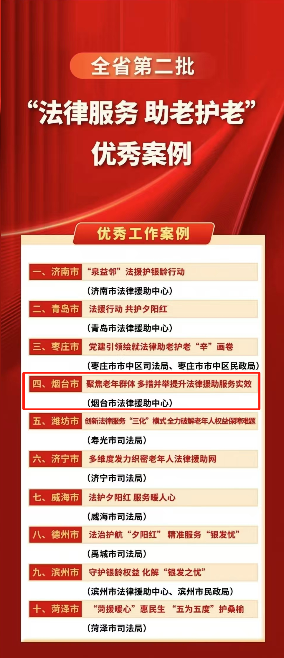 煙臺(tái)市法律援助工作案例入選全省“法律服務(wù) 助老護(hù)老”優(yōu)秀工作案例