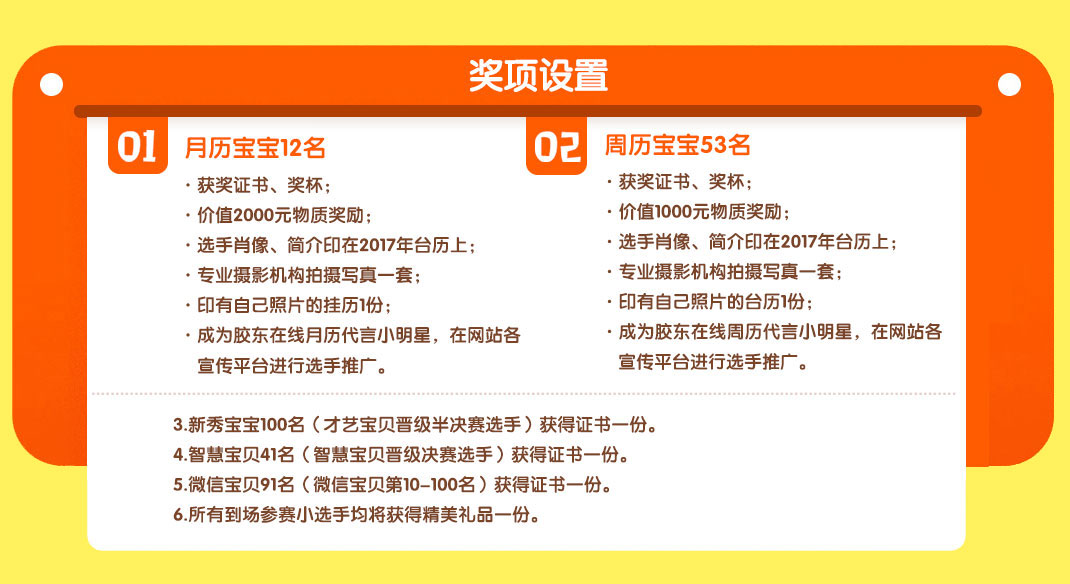 獎品贊助:山東嬰兒樂股份有限公司,煙臺海昌鯨鯊館,煙臺維正服飾,養(yǎng)樂多,萬達寶貝王,杭州娃哈哈有限公司