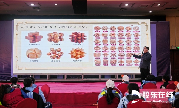 承接上午的精彩,下午的活動依就看點十足。首先,煙臺二中邀請專家為同學(xué)們帶來了一場深入淺出的航天主題講座。講座過程中,同學(xué)們認真聆聽、積極互動,針對自己感興趣的航天問題向?qū)<艺埥蹋F(xiàn)場學(xué)習(xí)氛圍十分濃厚。隨后開展的魯班鎖講座,讓同學(xué)們感受到了傳統(tǒng)榫卯工藝的獨特魅力。講師詳細介紹了魯班鎖的起源、結(jié)構(gòu)原理與文化內(nèi)涵,引導(dǎo)同學(xué)們體會傳統(tǒng)工藝中蘊含的邏輯思維與創(chuàng)新智慧。