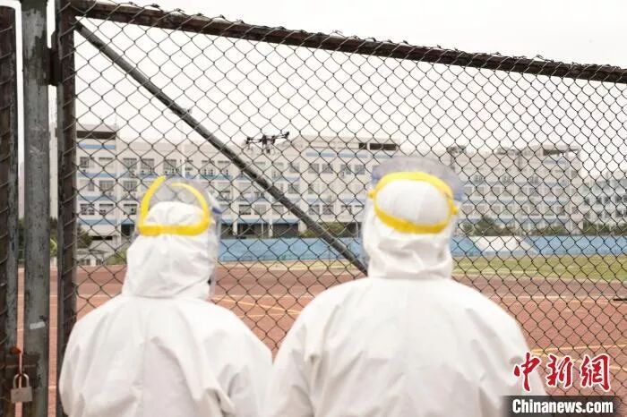 資料圖:深圳無人機(jī)在消殺作業(yè)中。鐘欣 攝