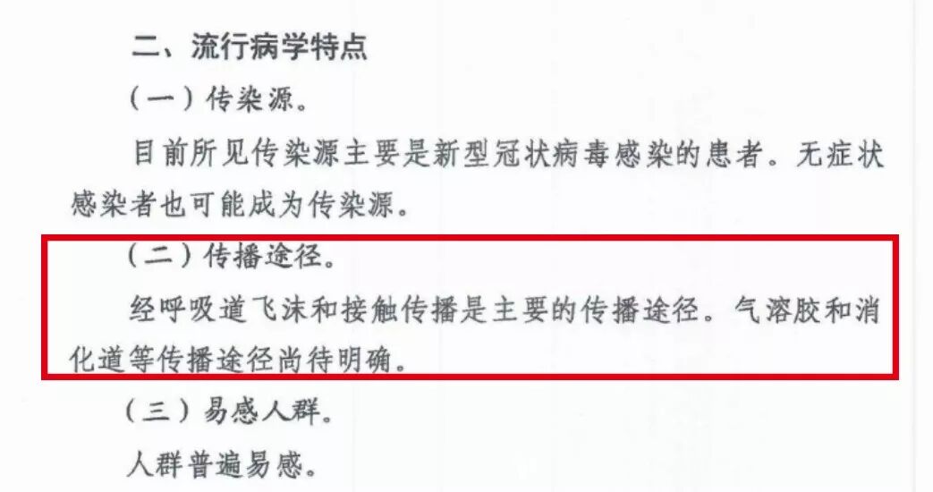 2月4日,國(guó)家衛(wèi)健委發(fā)布的《新型冠狀病毒感染的肺炎診療方案(試行第五版)》顯示,經(jīng)呼吸道飛沫和接觸傳播是主要的傳播途徑,氣溶膠和消化道等傳染途徑尚待明確。