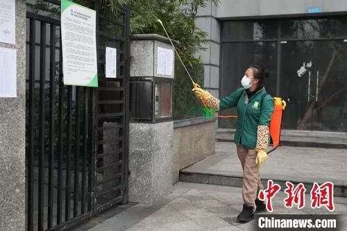 資料圖:貴陽花溪一小區(qū)工作人員對(duì)小區(qū)公共區(qū)域進(jìn)行消毒。瞿宏倫 攝