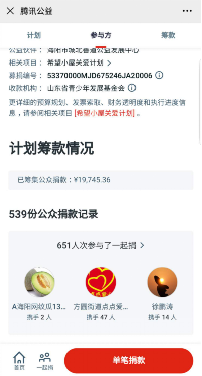 發(fā)動(dòng)開展“定向捐”。團(tuán)市委領(lǐng)導(dǎo)班子帶頭走訪豐金集團(tuán)、喜旺集團(tuán)、煙臺(tái)港集團(tuán)、煙臺(tái)濰坊商會(huì)等代表性強(qiáng)、輻射力大的重點(diǎn)企業(yè)和組織,累計(jì)募集5筆30萬以上的定向認(rèn)捐。發(fā)動(dòng)開展“消費(fèi)捐”。與支付寶合作推出“消費(fèi)捐”,顧客每通過支付寶消費(fèi)1次,商家為“希望小屋”項(xiàng)目捐助1次。截至目前,喜旺集團(tuán)1600多家門店、藍(lán)白集團(tuán)200余家門店,已累計(jì)捐助62.8萬筆,帶動(dòng)支付寶公益募捐次數(shù)超過100萬筆、募捐額40.8萬元,該做法由團(tuán)省委以簡(jiǎn)報(bào)形式在全省推廣。發(fā)動(dòng)開展“線上捐”。充分利用騰訊99公益日配捐規(guī)則,號(hào)召機(jī)關(guān)事業(yè)單位、駐煙高校、區(qū)市團(tuán)委、愛心企業(yè)等上線“希望小屋”子項(xiàng)目,同時(shí)發(fā)動(dòng)各子項(xiàng)目?jī)?nèi)部“一起捐”。目前,已上線子項(xiàng)目53個(gè),募捐金額145萬元。