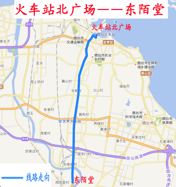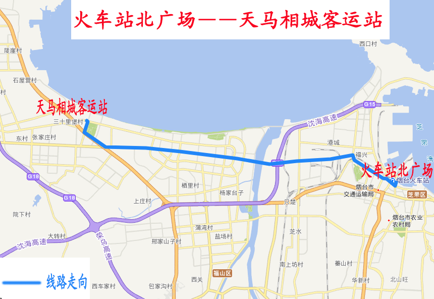 由火車站北廣場(chǎng)發(fā)車,沿海港路、北馬路、芝罘屯路、幸福南路、長(zhǎng)江路、北京南路、紹興路、黃河路運(yùn)行至天馬相城客運(yùn)站。