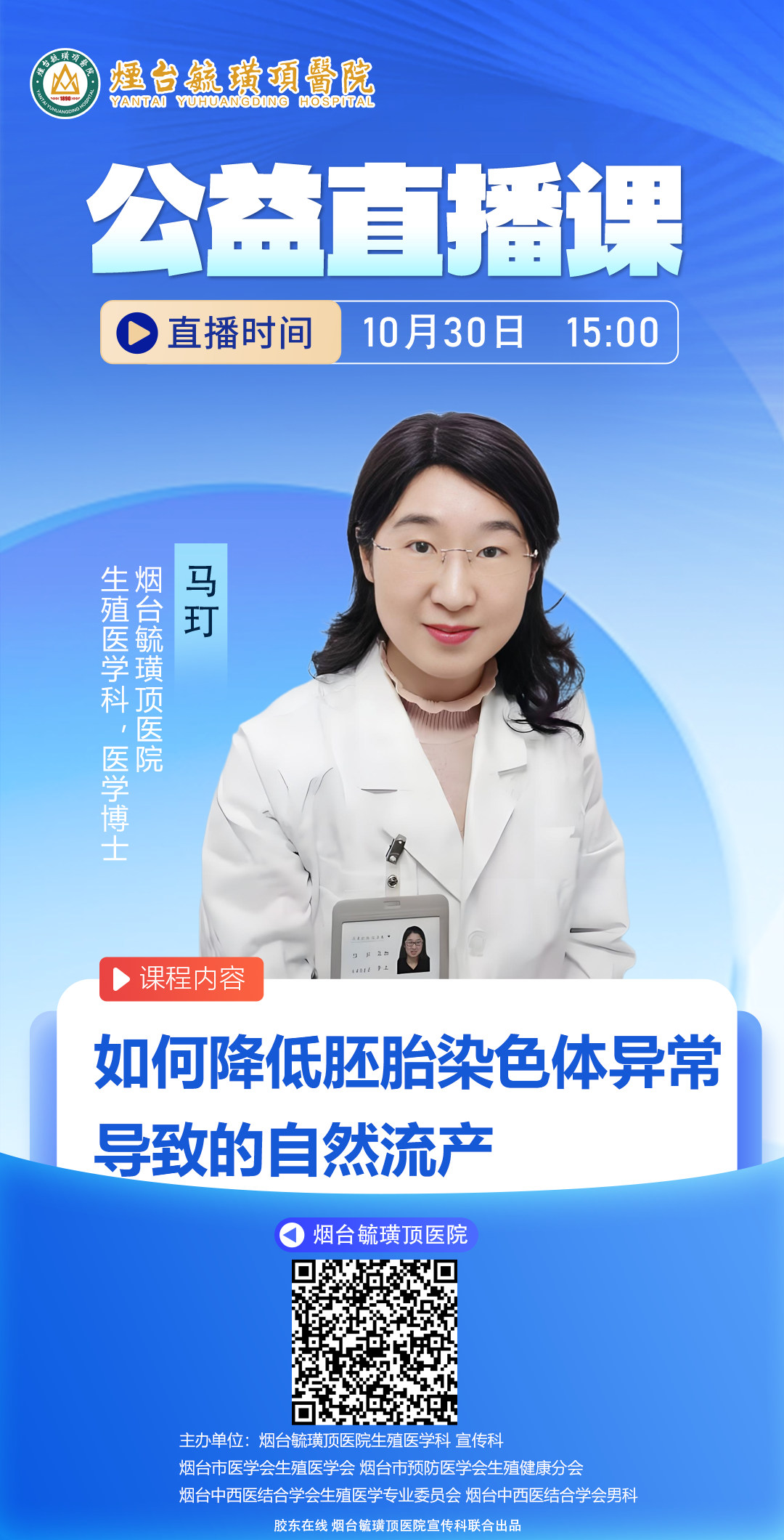 無論你是正在備孕的夫妻,還是曾經(jīng)歷過自然流產(chǎn)、渴望擁有健康寶寶的家庭,這場直播都能為你帶來科學(xué)指引,幫你避開備孕 “雷區(qū)”!10月30日下午15:00,我們邀請(qǐng)煙臺(tái)毓璜頂醫(yī)院生殖醫(yī)學(xué)科醫(yī)學(xué)博士馬玎,用通俗易懂的語言,深度解析 “胚胎染色體異常與自然流產(chǎn)” 的核心問題,幫你找到科學(xué)應(yīng)對(duì)的方向!