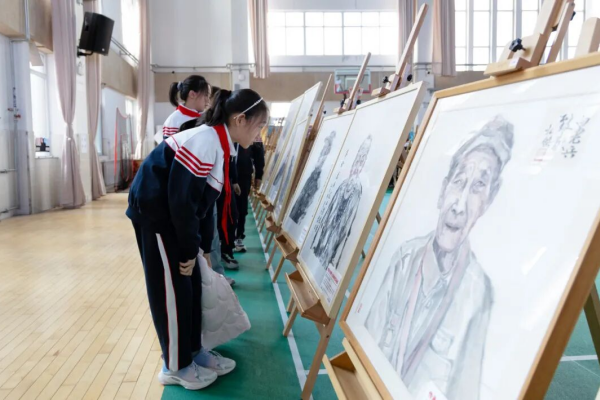 “這位爺爺在戰(zhàn)場上英勇負傷,卻依然堅持戰(zhàn)斗!”五年級的一位同學說。畫像中,老兵堅毅的眼神與泛黃的歷史照片交相輝映,讓在場師生仿佛穿越時空,親歷那段烽火歲月。