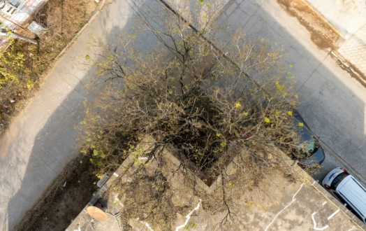 道路修好了,武照花家里朝南的正房從4間減少到了3間,這棵國槐的位置也從院里變到了路邊,在這個(gè)相對(duì)獨(dú)立又與房屋緊密相伴的空地里生長,成了崗?fù)醮錝053鄉(xiāng)道上一道獨(dú)特的風(fēng)景。